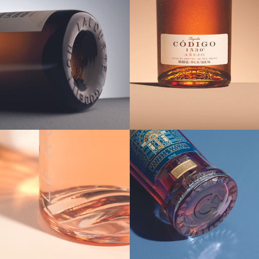 This concept consists in positioning a wrap-around embossing on the lower body of the bottle. The embossing can be the name of the winery, geometrical motifs, even figurative scenes...